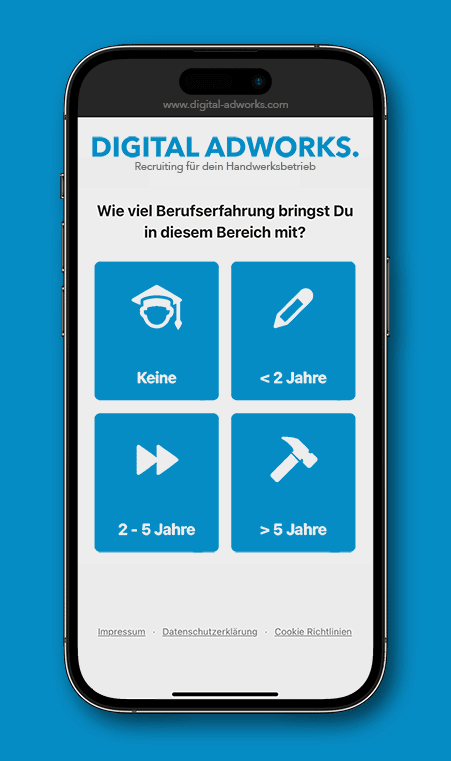 Unsere Mission ist es, Unternehmern zu helfen von altmodischen, teuren und unpraktikablen Bewerbungsprozessen wegzukommen, denn diese funktionieren schlichtweg nicht mehr. Die "normalen" Bewerbungsportale, überbezahlte Headhunter oder Stellenanzeigen in der Presse sind Rekrutierungsmöglichkeiten des letzten Jahrhunderts, die heutzutage keine oder nicht die richtigen Fachkräfte liefern. Daher haben wir es uns zum Ziel gemacht, dass wir den kompletten Bewerbungsprozess von A-Z neu denken. Unsere Digital Adworks® - Methode liefert simpel, digital und schnell sowohl für Unternehmen als auch für die Bewerber ein Bewerbungsprozess der Extraklasse.